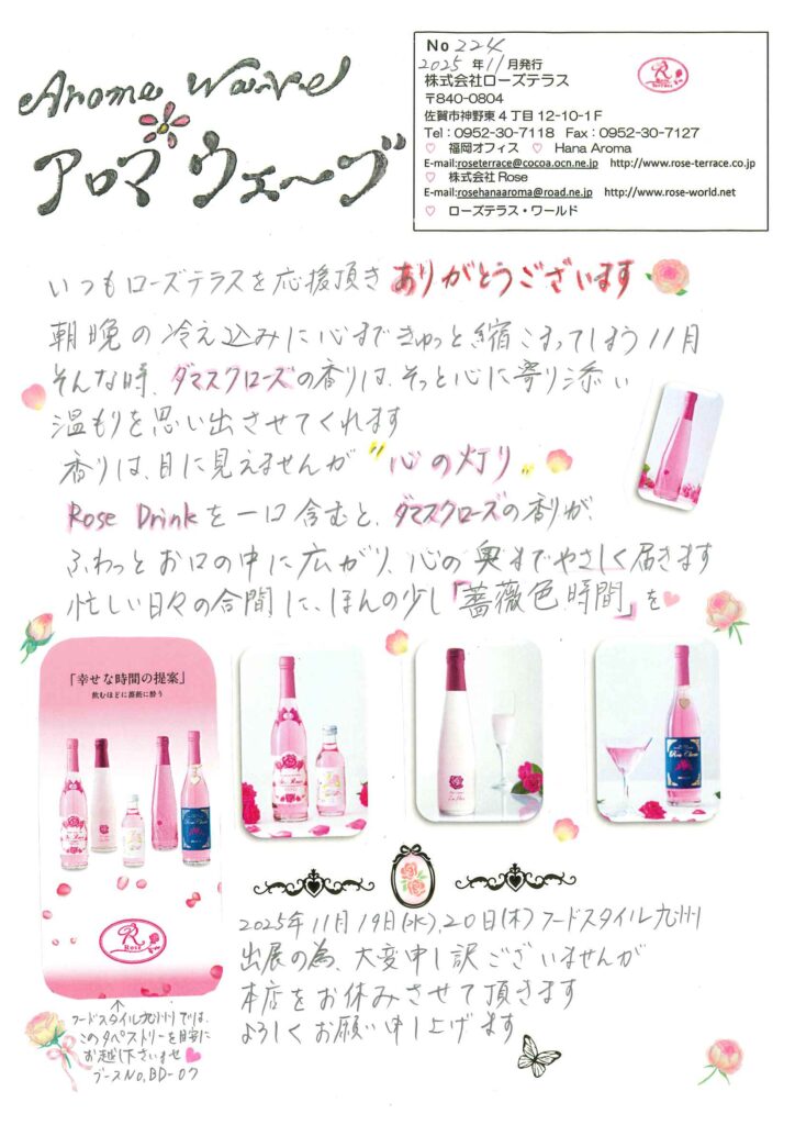佐賀県の天山水系伏流水を使用し、その清らかな水がダマスクローズの魅力を引き立てます。